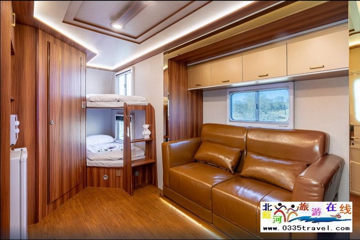 6.5米房車:15平米 2張單人床和1張沙發(fā)床