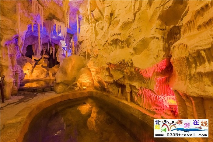 通過現(xiàn)代發(fā)達(dá)的建造工藝,仿造出一個逼真的溶洞奇觀,并將溫泉池星羅棋布的置于其中,配上先進(jìn)的燈光造景技術(shù),以打造一個幽靜、絢麗的溶洞溫泉奇觀。溶洞溫泉區(qū)主要由“鐘乳池、石筍池、石幔池、石花池、云盆池、石芽池、石珊池”等7個溫泉池構(gòu)成。